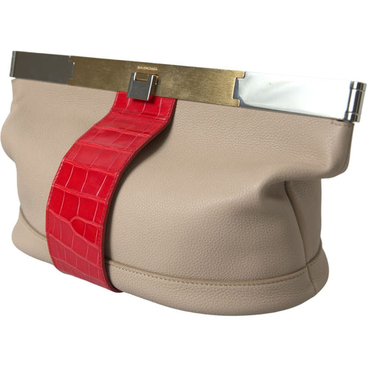 Balenciaga Beige Red Two Tone Exotic Leather Pouch Bag