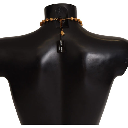 Dolce & Gabbana Gold Chain Brass Faux Pearl Charm Logo Pendant Necklace