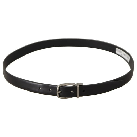 Dolce & Gabbana Black Classic Leather Silver Tone Metal Buckle Belt